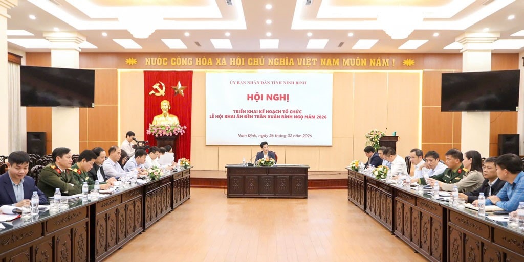(CLO) Chiều 26/2, UBND tỉnh Ninh Bình làm việc với các sở, ngành và phường Nam Định về công tác chuẩn bị tổ chức Lễ hội Khai ấn Đền Trần xuân Bính Ngọ năm 2026, rà soát các khâu tổ chức, phương án bảo đảm an ninh trật tự, an toàn giao thông, vệ sinh môi trường và điều kiện phục vụ Nhân dân, du khách tham dự lễ hội.