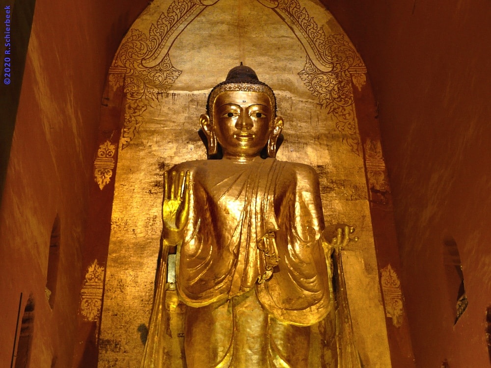 Tại Myanmar, chùa Ananda – một kiệt tác kiến trúc tại Bagan – cũng tôn thờ bốn bức tượng Phật bằng vàng cao lớn ở bốn hướng. Trong số đó, bức tượng Đức Phật Câu Na Hàm Mâu Ni cao khoảng 10m bằng vàng ròng luôn khiến du khách kinh ngạc bởi vẻ tráng lệ và uy nghiêm.