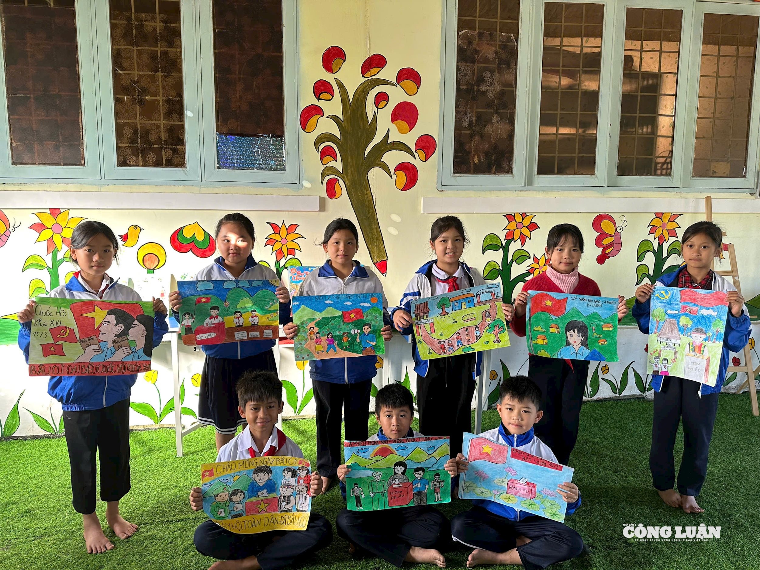 Quảng Ngãi: Hàng trăm học sinh vùng cao vẽ tranh hướng về ngày hội non sông