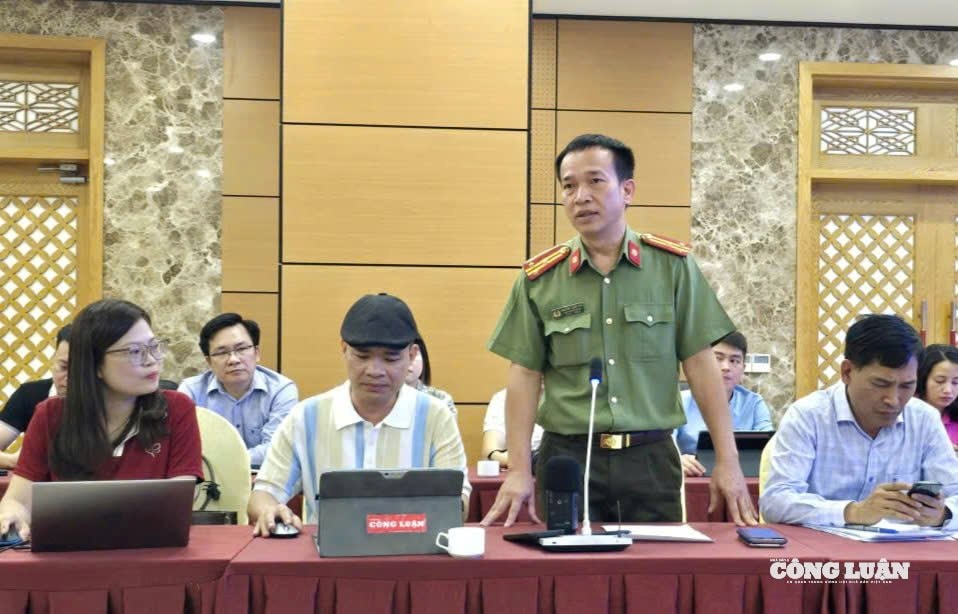 Thượng tá Nguyễn Xuân Phú, Phó Trưởng phòng An ninh chính trị nội bộ, Công an tỉnh Quảng Ninh thông tin về công tác bảo đảm an ninh trật tự trong chuỗi sự kiện tại họp báo.
