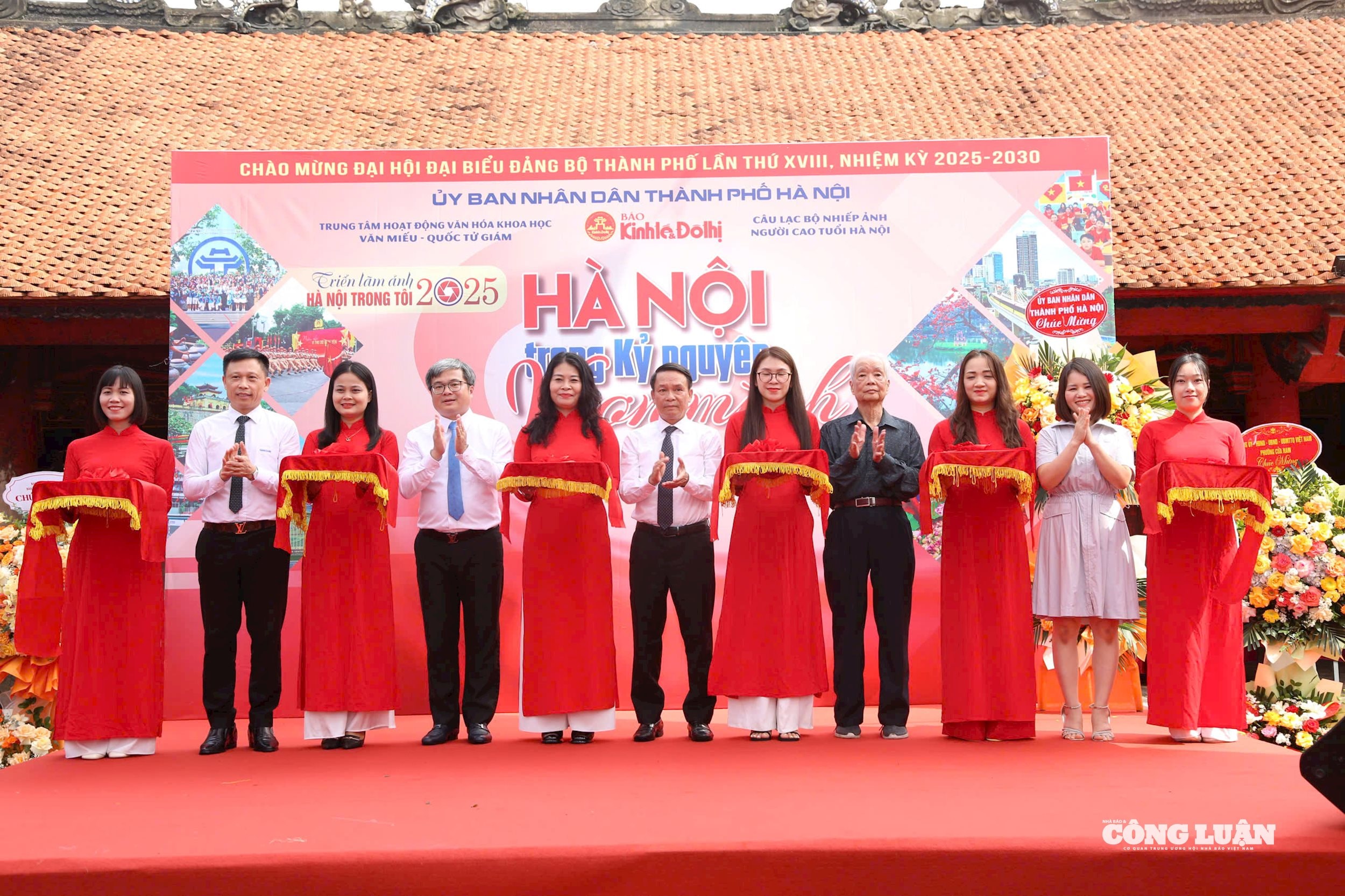 Các đại biểu thực hiện nghi thức cắt băng khai mạc Triển lãm ảnh “Hà Nội trong tôi” lần thứ 20 – năm 2025.