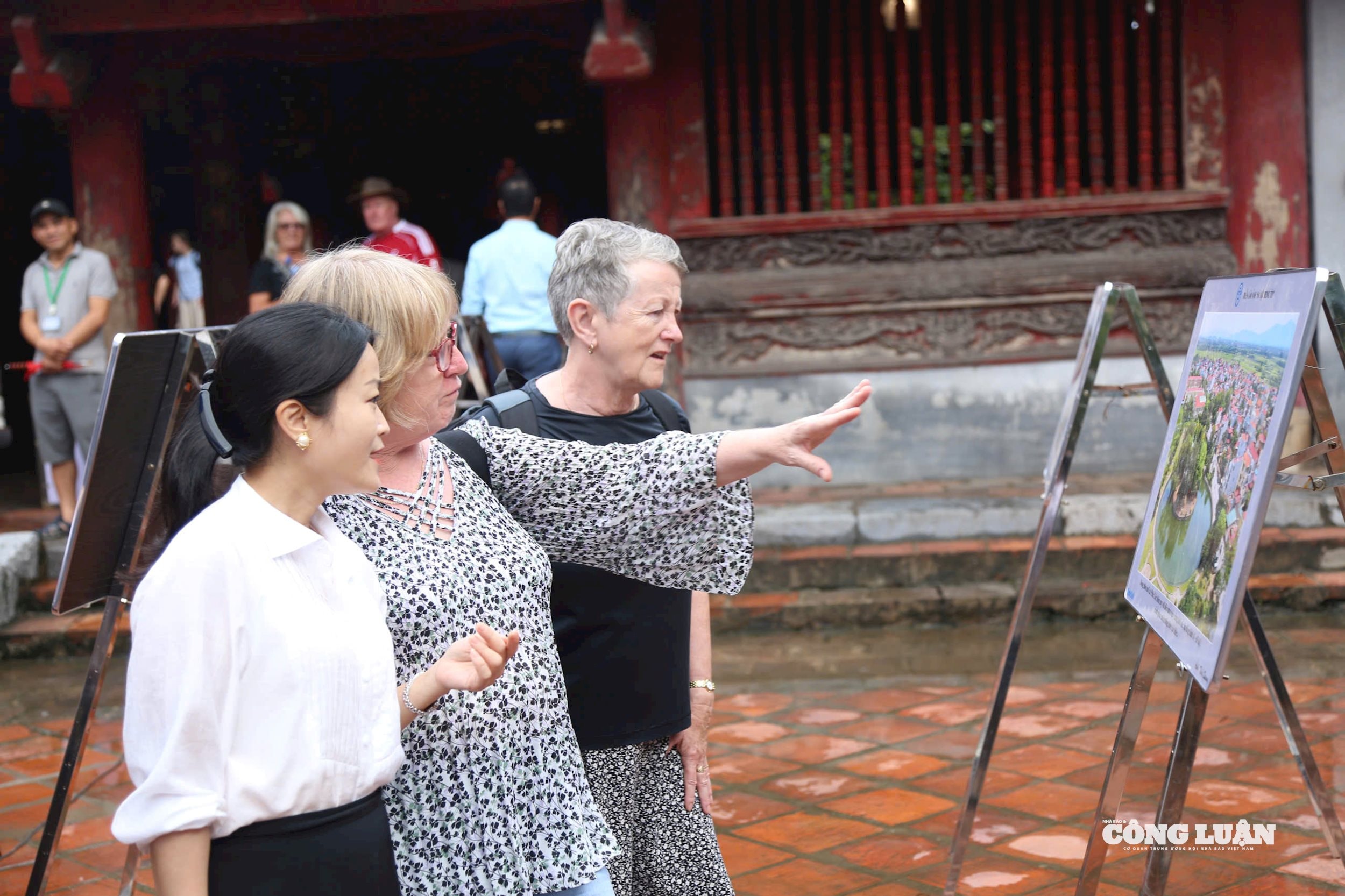 Người dân và du khách quốc tế chăm chú xem ảnh tại khu vực trưng bày.