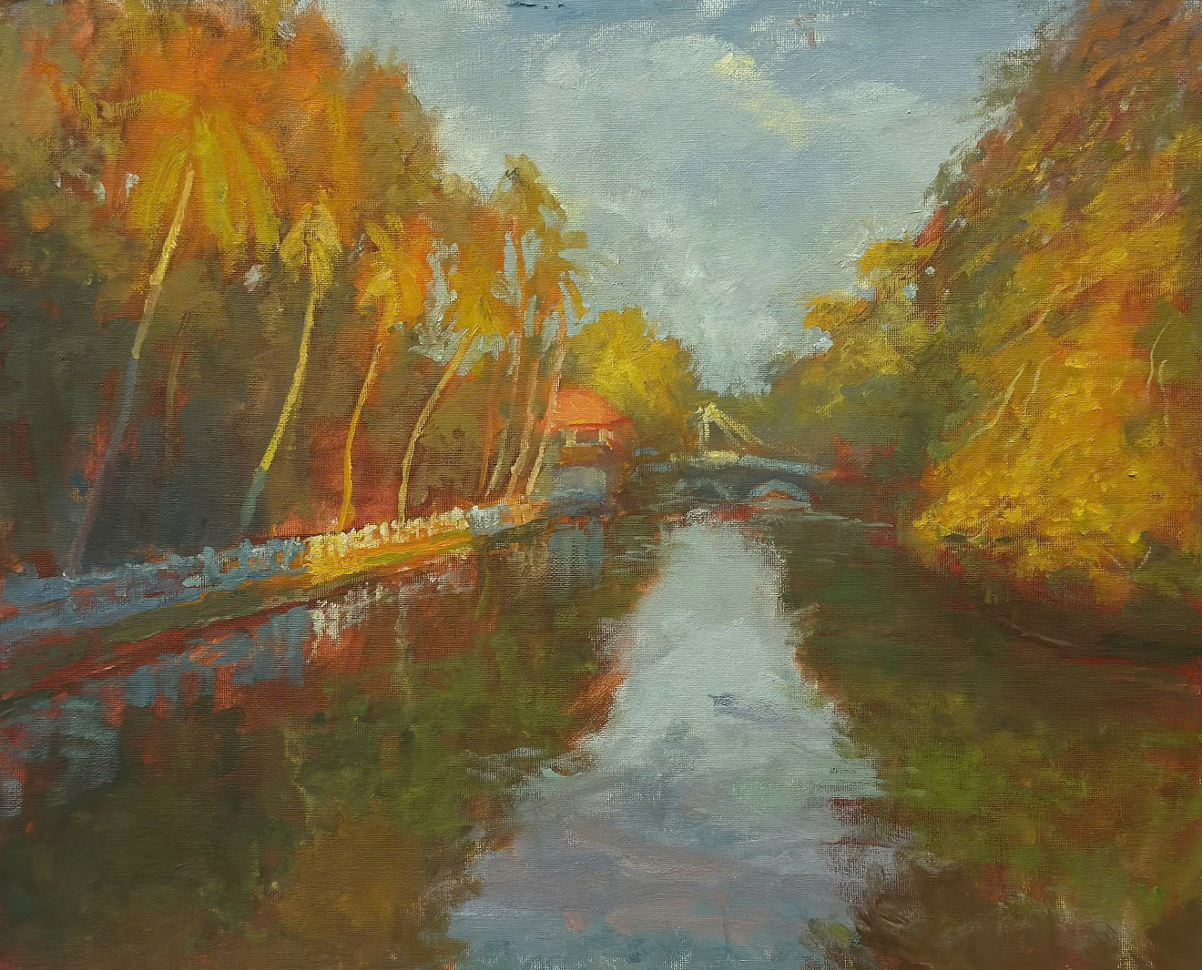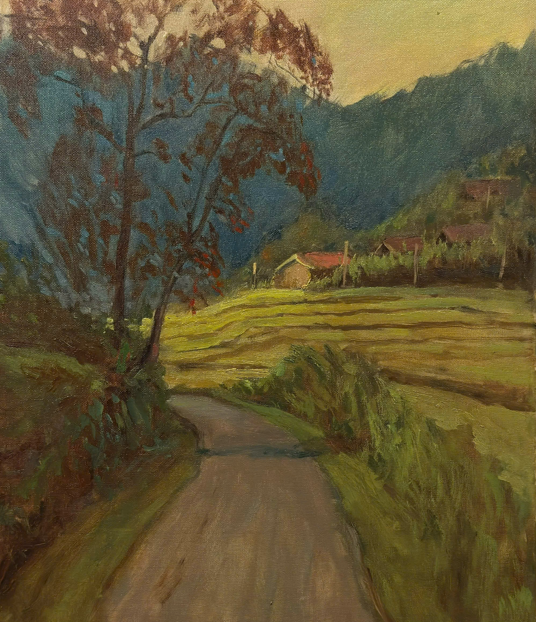 Tác phẩm: Chiều thu Xứ Đoài; Kích thước: 40 x 50cm; Chất liệu: Sơn dầu; Năm sáng tác: 2024; Tác giả: Đinh Hồng Quân.
