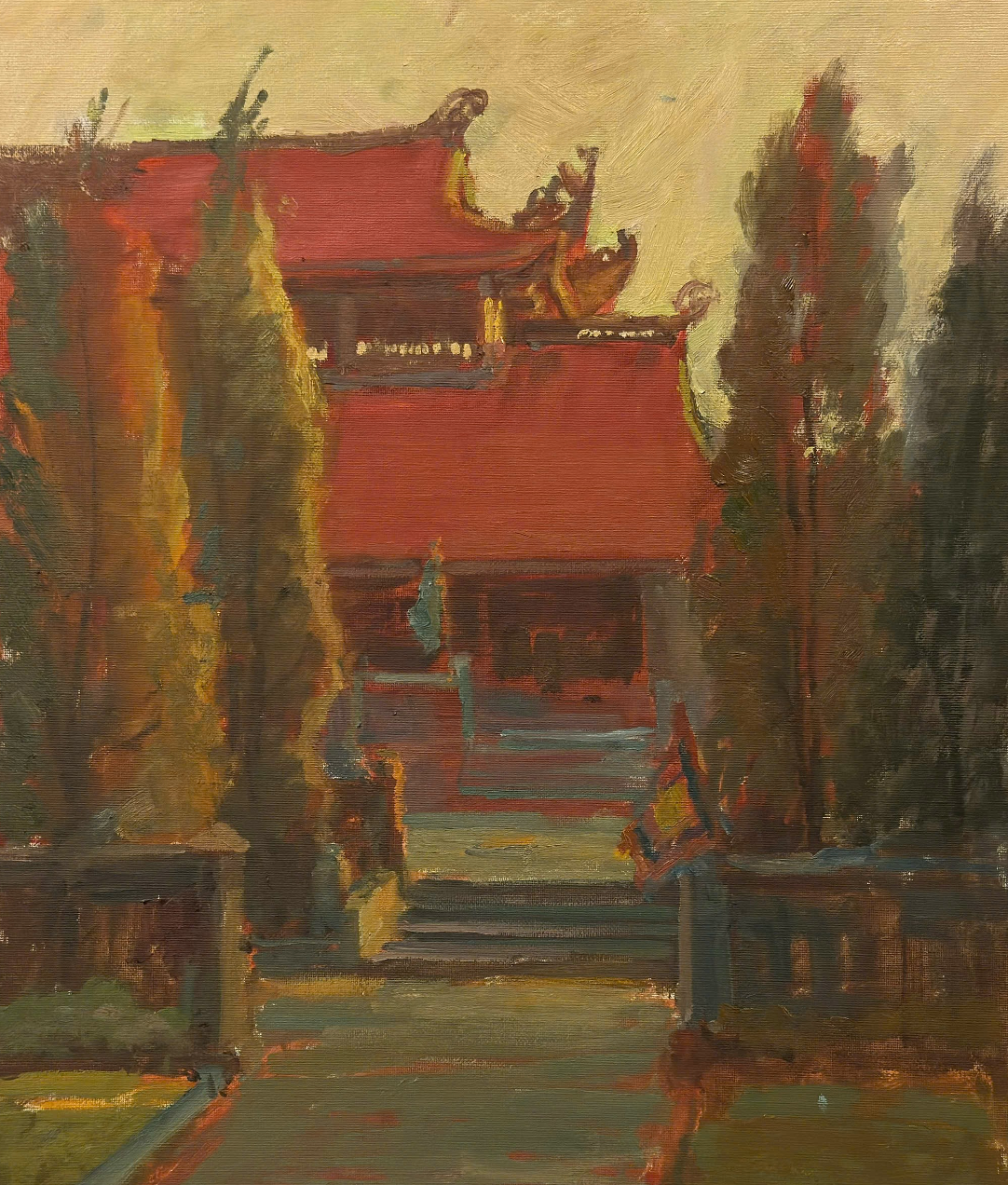 Tác phẩm: Điện Kính Thiên; Kích thước: 40 x 50cm; Chất liệu: Sơn dầu; Năm sáng tác: 2025; Tác giả: Đinh Hồng Quân.