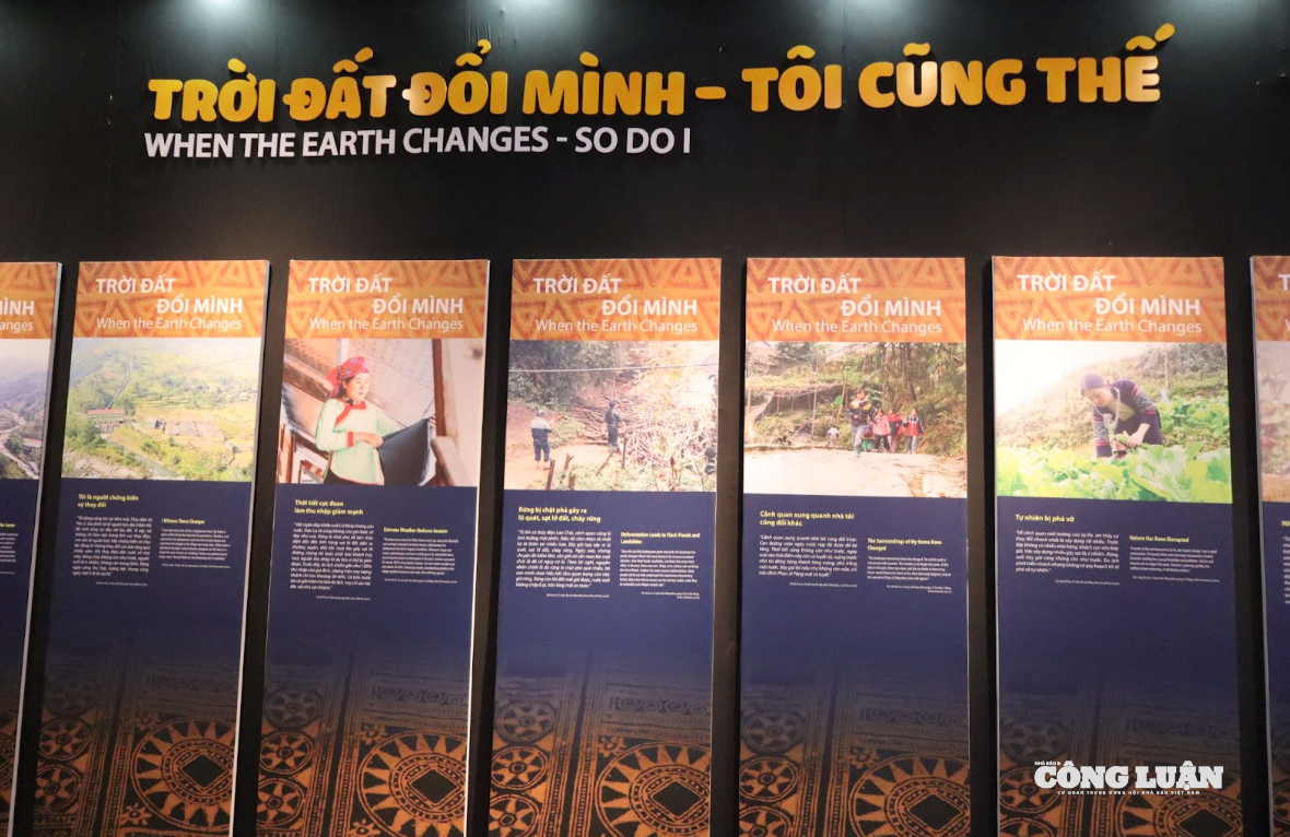 Các bảng thông tin, hình ảnh tại khu trưng bày chủ đề “Trời đất đổi mình - Tôi cũng thế”. Ảnh: Trần Phương