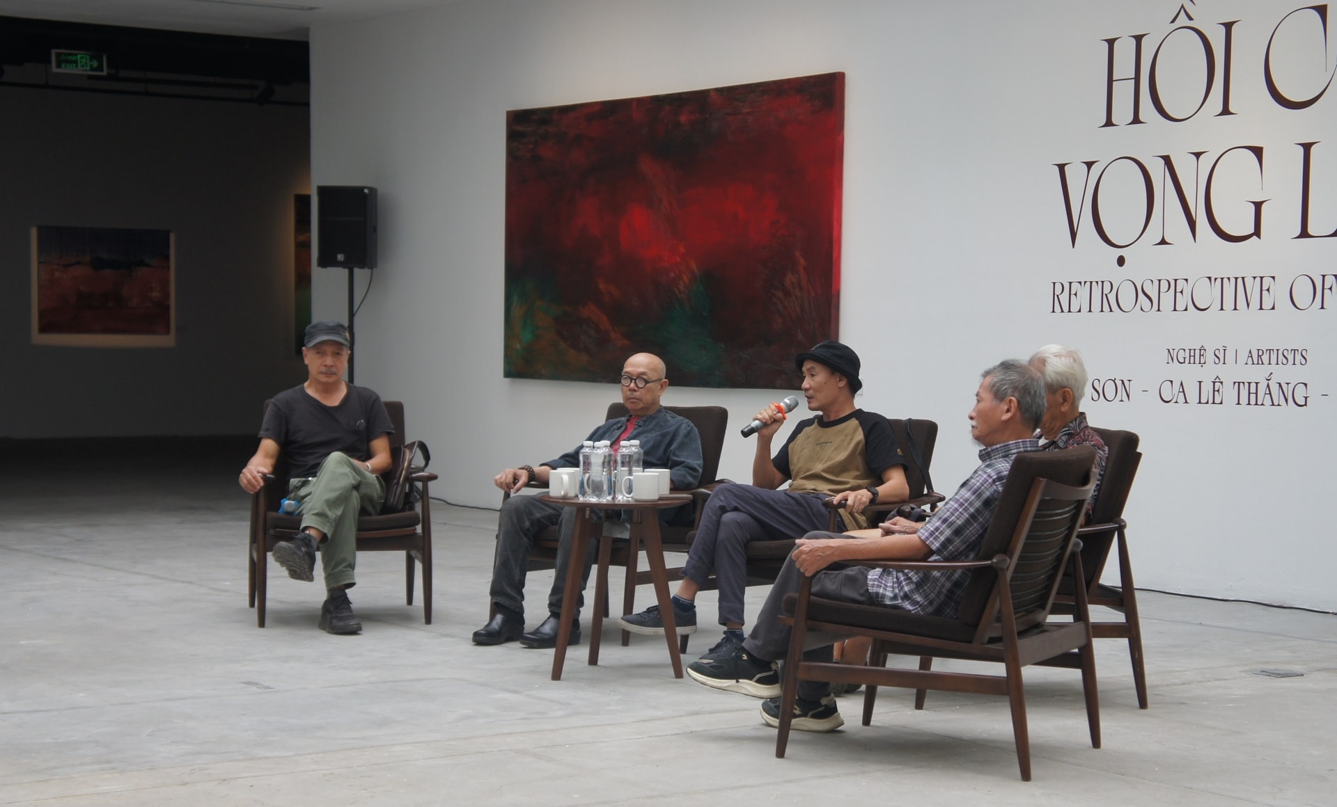 Các diễn giả chia sẻ tại art talk trong khuôn khổ triển lãm “Hồi cố vọng lai”.