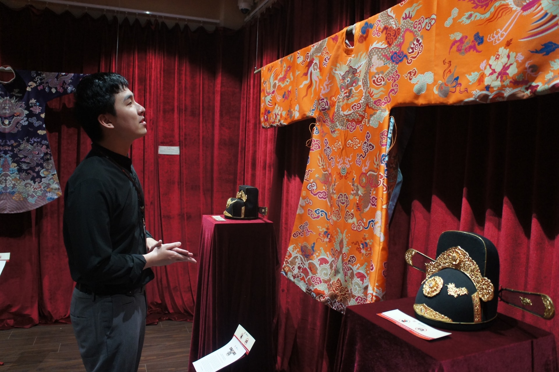 Trang phục của y quan cung đình thời Nguyễn được nhóm bạn trẻ Great Việt Nam nghiên cứu, phục dựng và giới thiệu tại triển lãm “Thấp thoáng vàng son”.