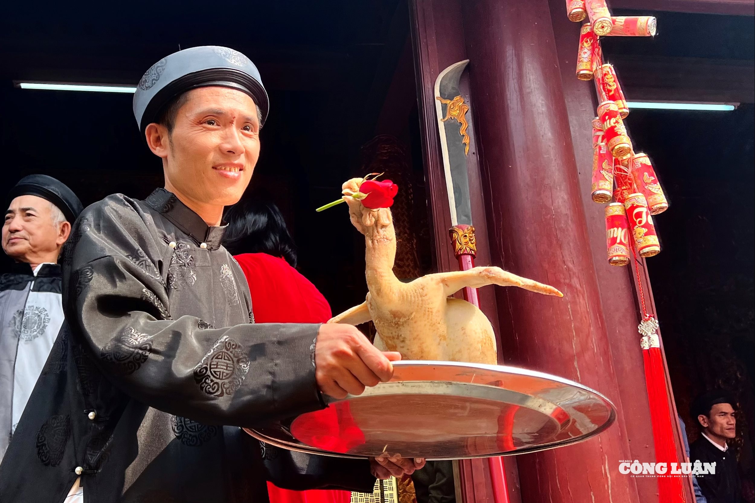 Gà cúng dâng vào đình phải được lựa chọn kỹ càng, gà trống có trọng lượng từ 4kg trở lên, mào đỏ, móng sắc nhọn.