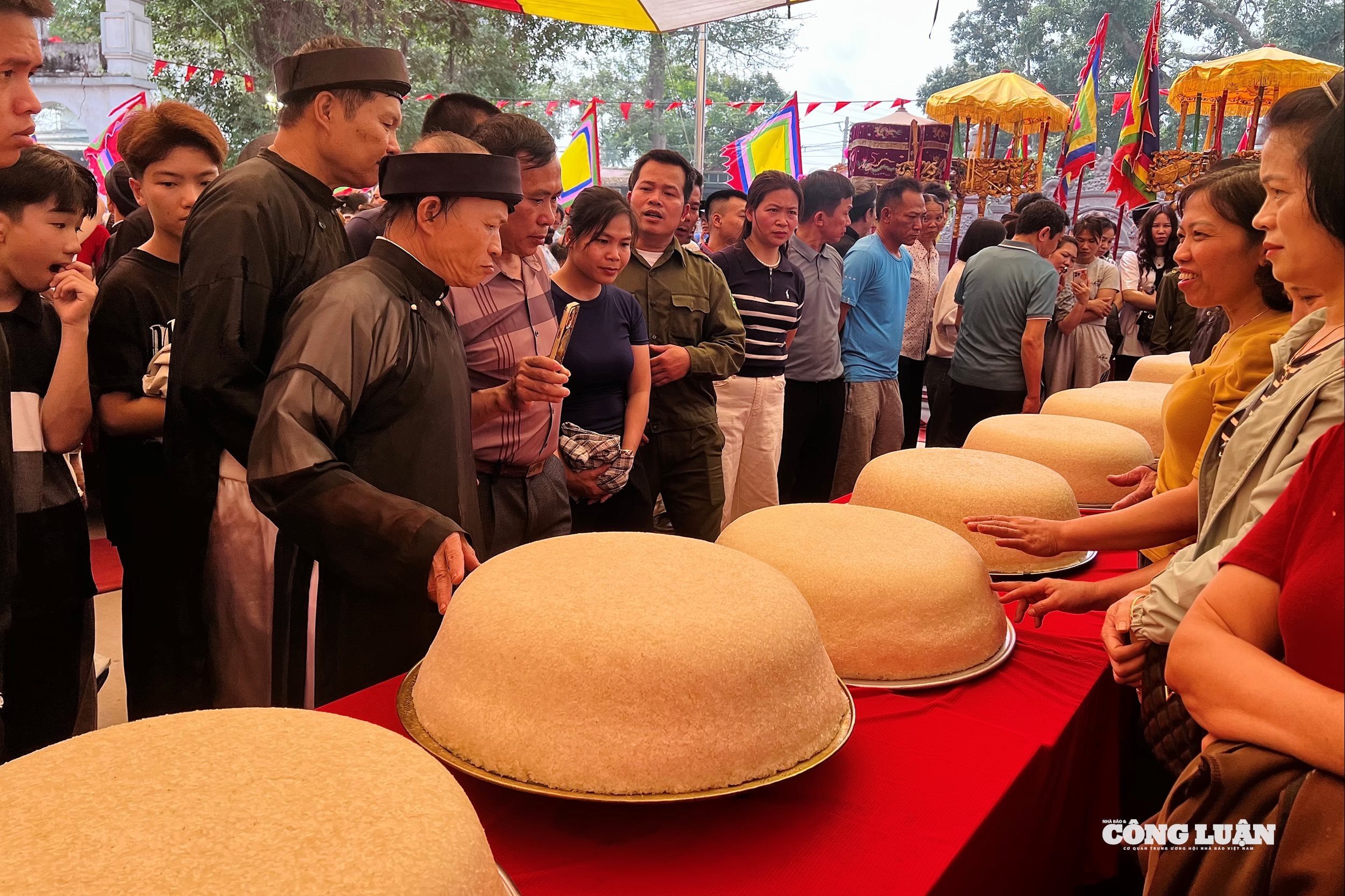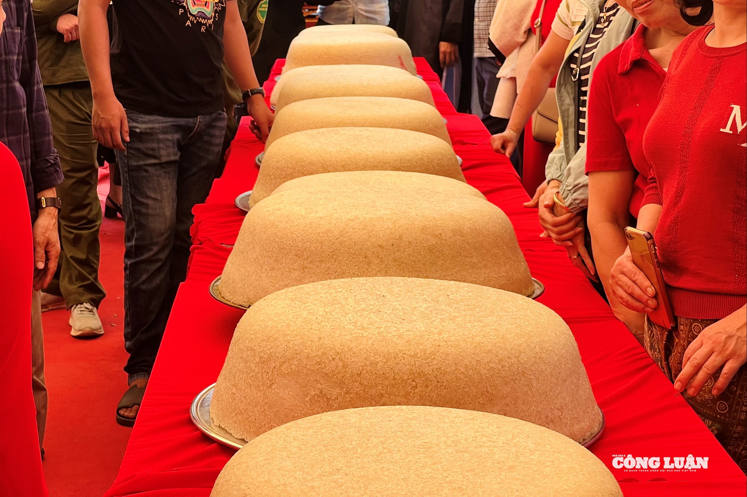 Phần xôi dự thi cũng đòi hỏi sự tỉ mỉ. Gạo dùng là nếp cái hoa vàng dẻo thơm, được lựa chọn kỹ lưỡng, vo sạch và ngâm trước khi nấu. Mâm xôi khi dựng lên phải trắng phau, bề mặt mịn, không nứt, thường có trọng lượng từ 15–20kg mỗi mâm.