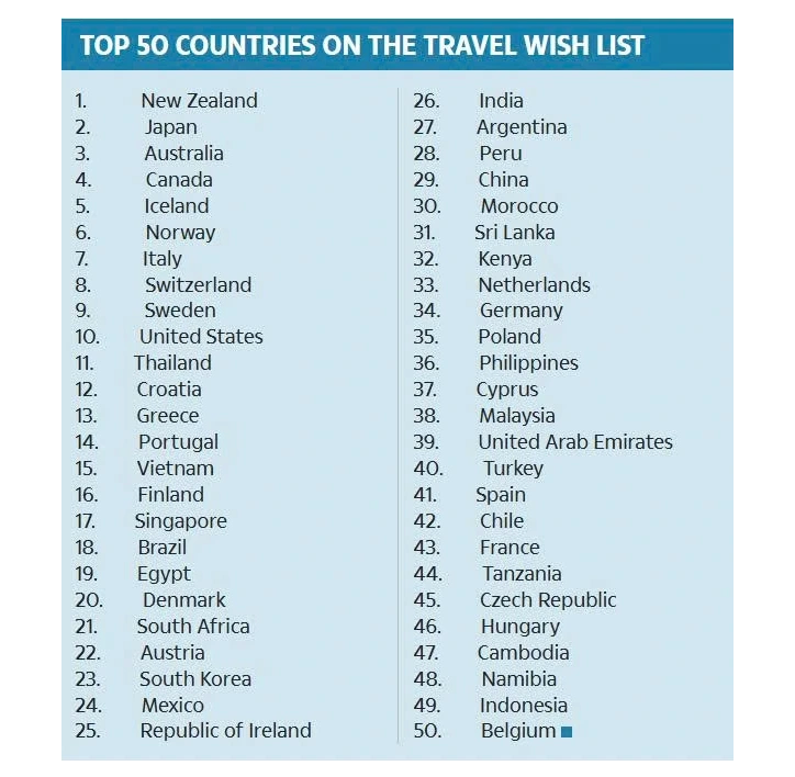 (CLO) Một khảo sát mới do Công ty Bảo hiểm du lịch Staysure ủy thác thực hiện trên 2.000 du khách Anh cho thấy, Việt Nam nằm trong nhóm các quốc gia “ước được đến thăm nhất”, xếp thứ 15 trong danh sách 50 điểm đến hàng đầu.