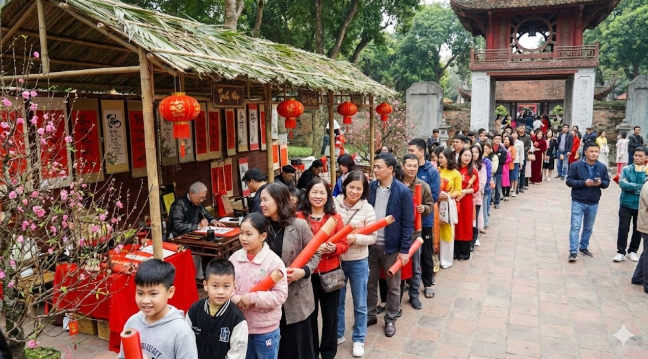 Ngày cuối Hội chữ Xuân tại Văn Miếu – Quốc Tử Giám thu hút đông đảo người dân xin chữ cầu may, gửi gắm ước vọng hanh thông trước khi bắt đầu công việc năm mới.